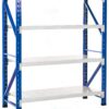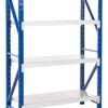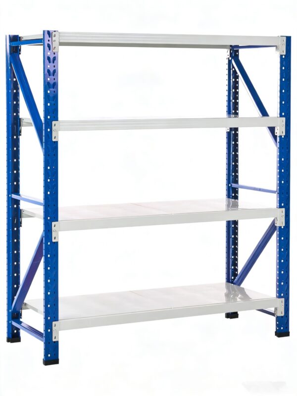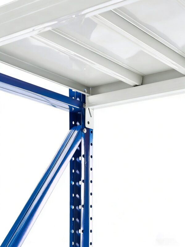 Unidad de estanteria de acero que combina resistencia y funcionalidad, ideal para almacenar mercancía pesada de manera organizada y segura, maximizando el espacio disponible.