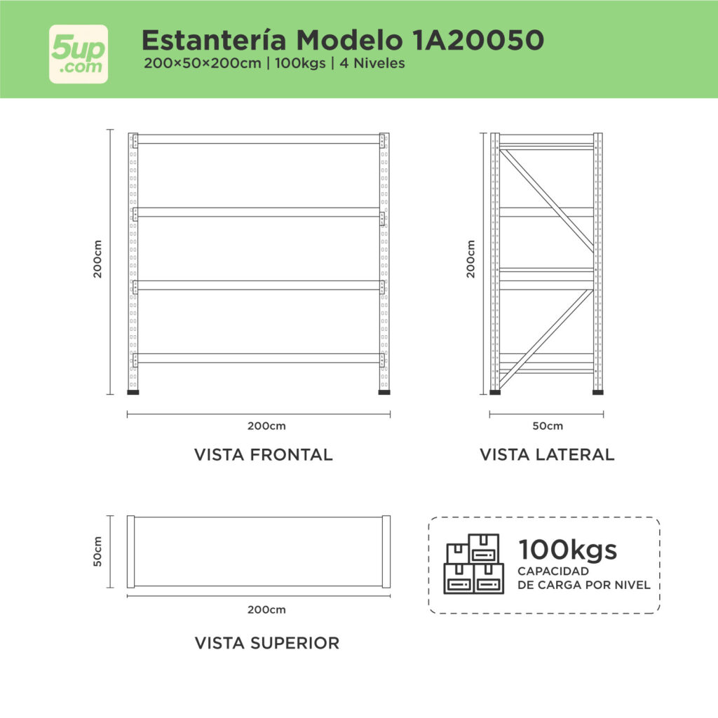 Dimensiones 200 × 50 × 200 cm