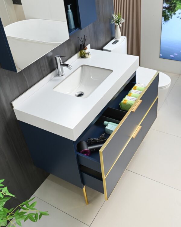 Gabinete grande con encimera de piedra ideal para proyectos residenciales premium.