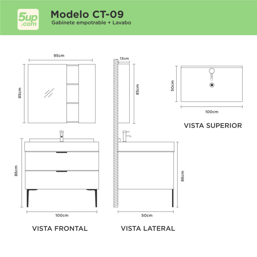 | Medidas: | Gabinete: 100x50x86 cm, Espejo: 95x85x12 cm |