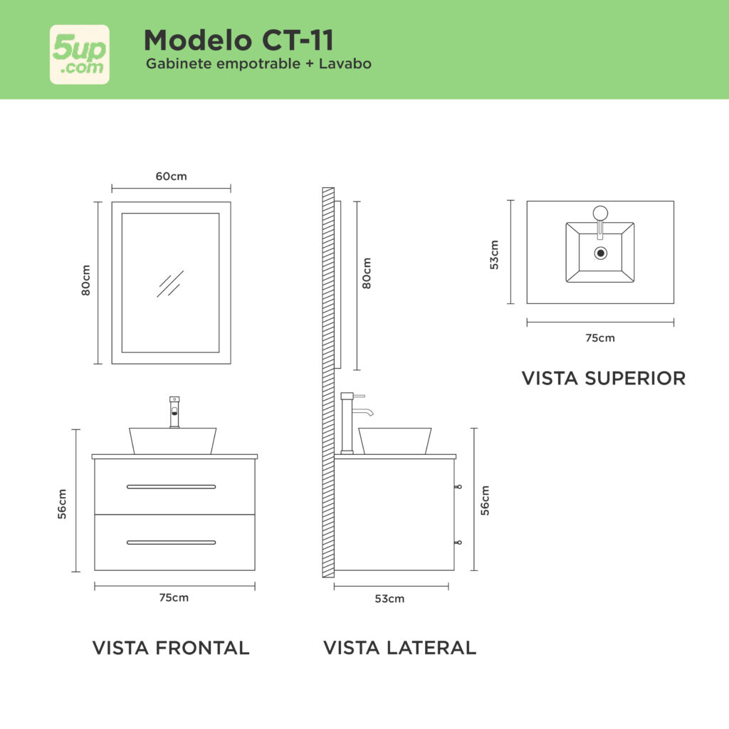 | Medidas: | Gabinete: 750×560×530 mm, Espejo: 600×800 mm |