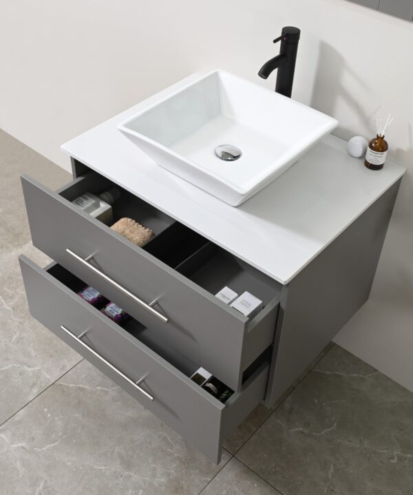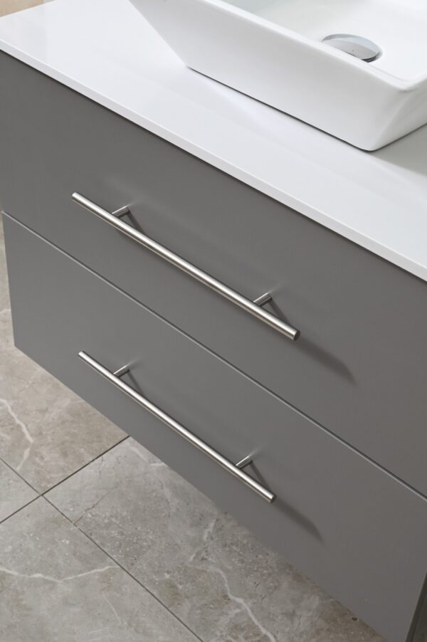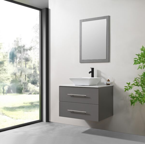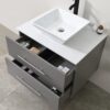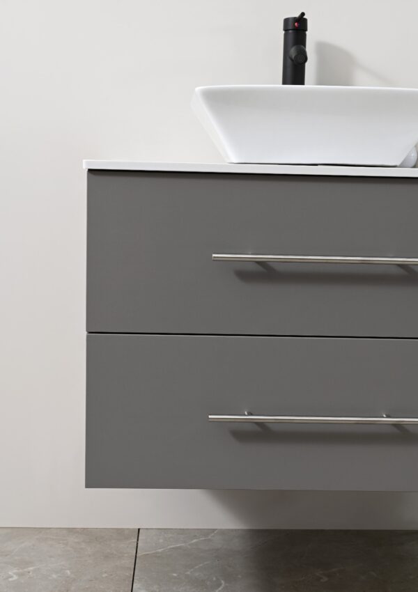 Mueble para baño con acabado moderno y grifo negro incluido.