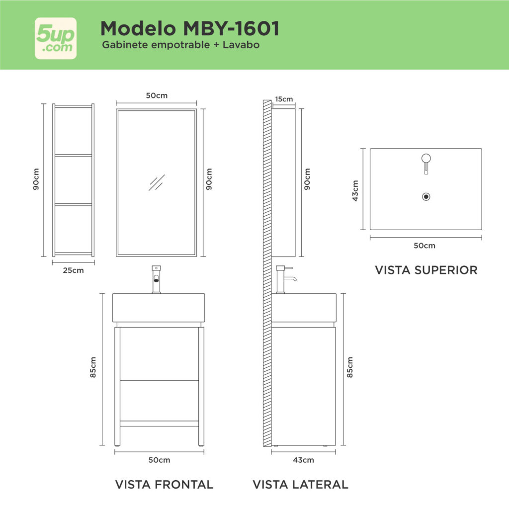 | Medidas: | Gabinete: 50x45x85 cm, Lateral: 25x15x90 cm, Espejo: 50×90 cm |